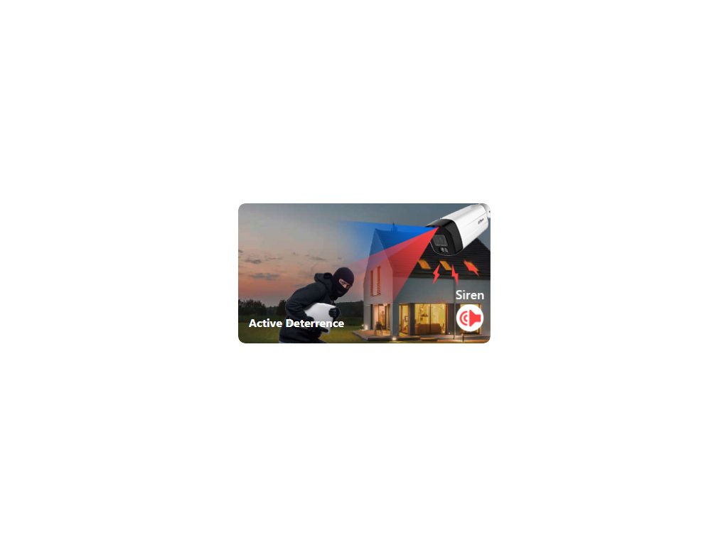 - Aktivní odstrašování - díky zabudovanému reflektoru a bezpečnostní siréně dokáže aktivně varovat narušitele a informovat uživatele dříve, než si všimne incidentu