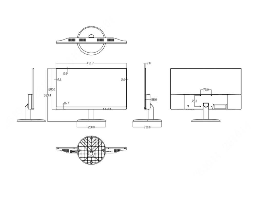 - Rozměry: 491,7 x 38 x 285,1 mm (se stojanem)