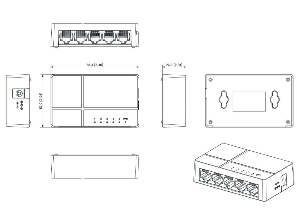 | Přenosová rychlost přepínače: | 10 / 100 / 1000 Mbps, 5 portů LAN |