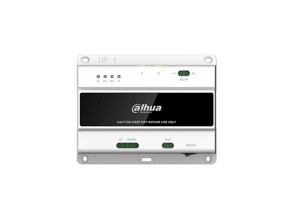 Dvoudrátový přepínač, jednoduchý, podporuje až 20 obrazovek VTH a 2 stanice VTO, lze kaskádovat až na 10 přepínačů, 2 porty RJ45 (10/100 Mb/s), montáž na lištu DIN, plastový kryt, bílý, napájení 48 V DC/3 A