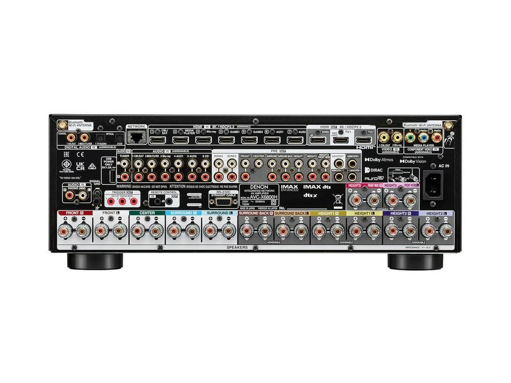 - flexibilita konfigurace: AVC-X6800H nabízí mnoho možností konfigurace a flexibilitu pro přizpůsobení domácího kina. Podporuje 13,4kanálové zpracování, režim předzesilovače, Audyssey MultEQ XT32 a volitelný upgrade Dirac Live a Dirac Live Bass Control (za poplatek)
