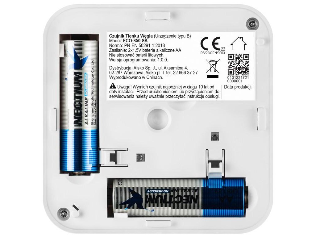 - Detektor oxidu uhelnatého Firesco FCO-850 SA je napájen 2 x 1,5V alkalickými bateriemi typu AA, takže poskytuje ochranu i v případě výpadku napájení ze sítě.