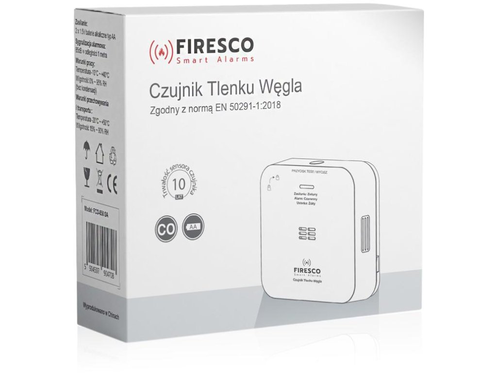 Detektor oxidu uhelnatého Firesco FCO-850 SA je vyroben v souladu s normou EN50291-1:2018 . Je certifikován nezávislým evropským zkušebním orgánem, že splňuje požadavky výše uvedené normy.