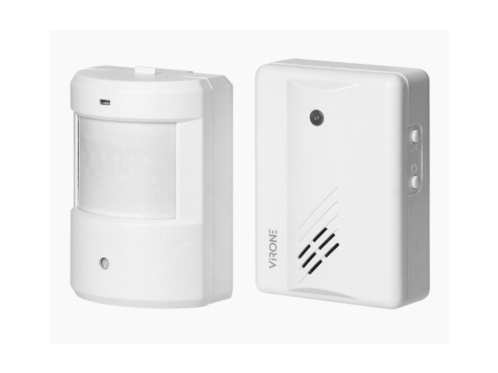PIR SENZOR POHYBU + SIGNALIZÁTOR - Snímač pohybu bezdrátově (prostřednictvím rádiových vln) vyšle impuls do přijímače, který akustickým signálem oznámí detekci pohybu v chráněném prostoru.