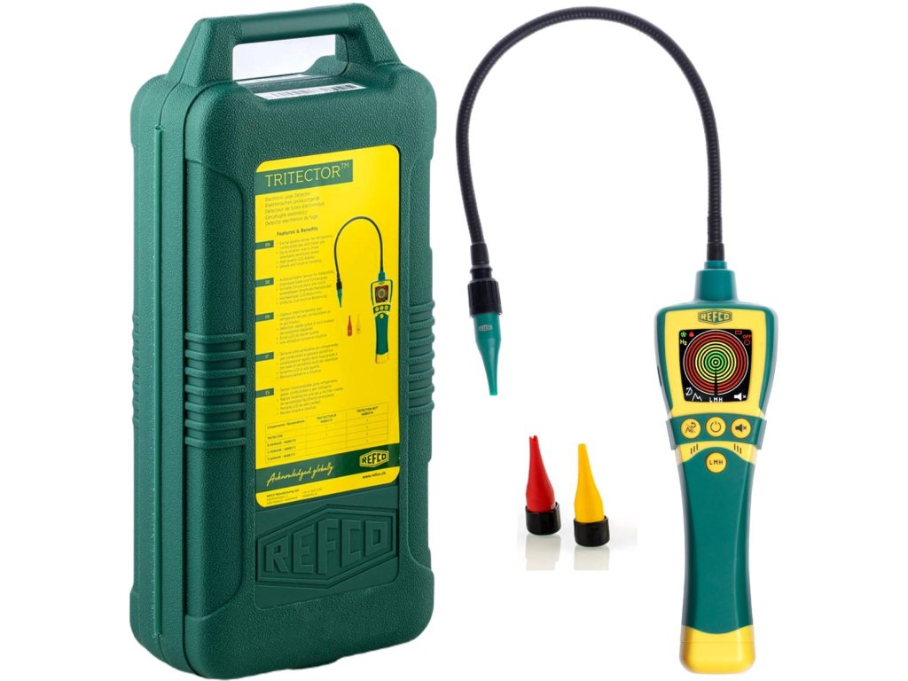 - Elektronický detektor úniku Refco Tritector-R je to praktické řešení 3 v 1 pro profesionální chladírenské techniky - díky snadno vyměnitelným senzorům lze detekovat všechna běžná chladiva (se sadou), hořlavé plyny (volitelně) a stopové plyny (volitelně) pomocí jediné jednotky.