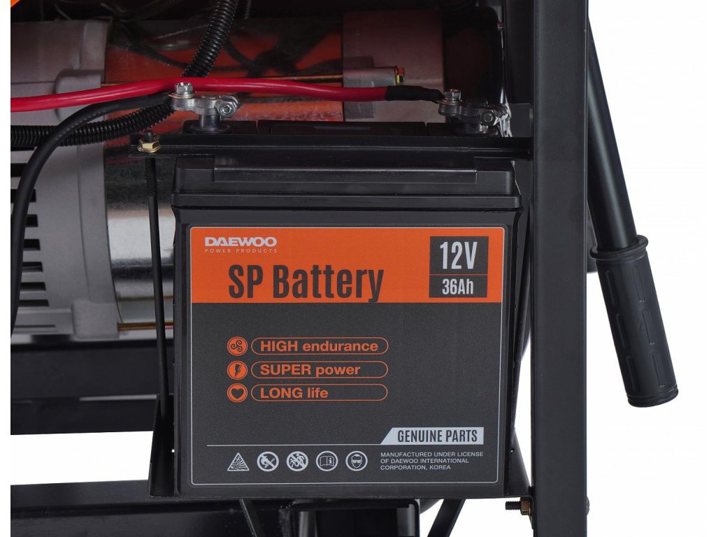Vestavěný elektrický startér a baterie umožňují spuštění elektrocentrály otočením klíčku bez nutnosti tahat za kabel.