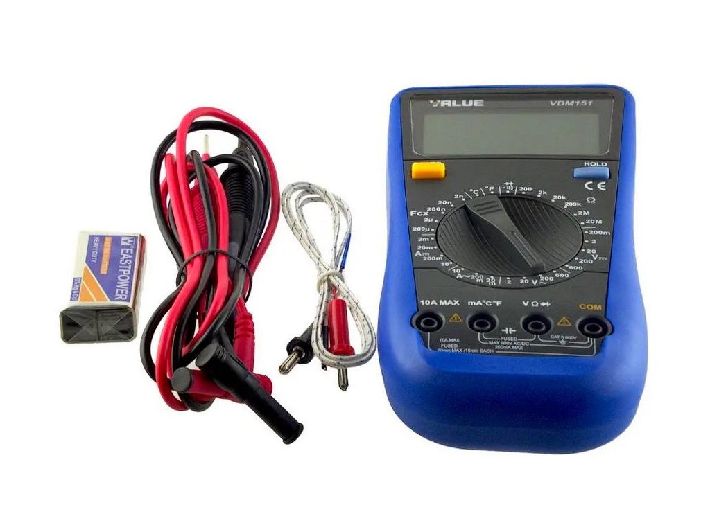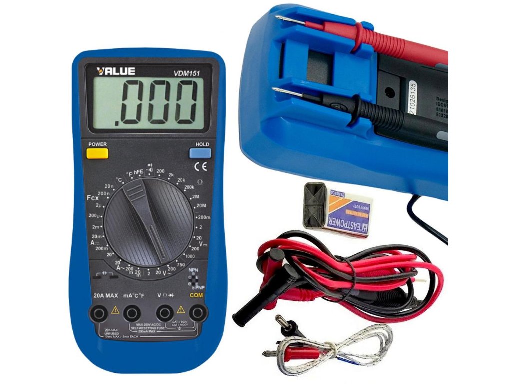Digitální multimetr VALUE VDM-151 je to univerzální měřicí přístroj, který je velmi užitečný v oblasti elektroniky, elektrotechniky a dalších oborech, kde je třeba měřit elektrické a elektronické parametry .