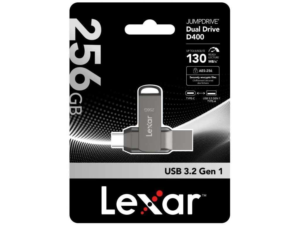 VýběrFlash disk Lexar Dual Drive D400 256 GBinvestujete do spolehlivosti a rychlosti. Užijte si pohodlí dvou konektorů, které usnadňují přenos dat mezi různými zařízeními. Dopřejte si více prostoru pro ukládání a přenos dat díky působivé kapacitě.