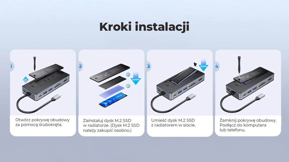 Potřebujete praktické a všestranné rozšiřující centrum pro svůj notebook, MacBook nebo Steam Deck? ORICO OM28P-G2 kombinuje rozbočovač USB, dokovací stanici a kryt disku M.2 v jednom kompaktním provedení - ideální pro mobilní tvůrce a profesionály.