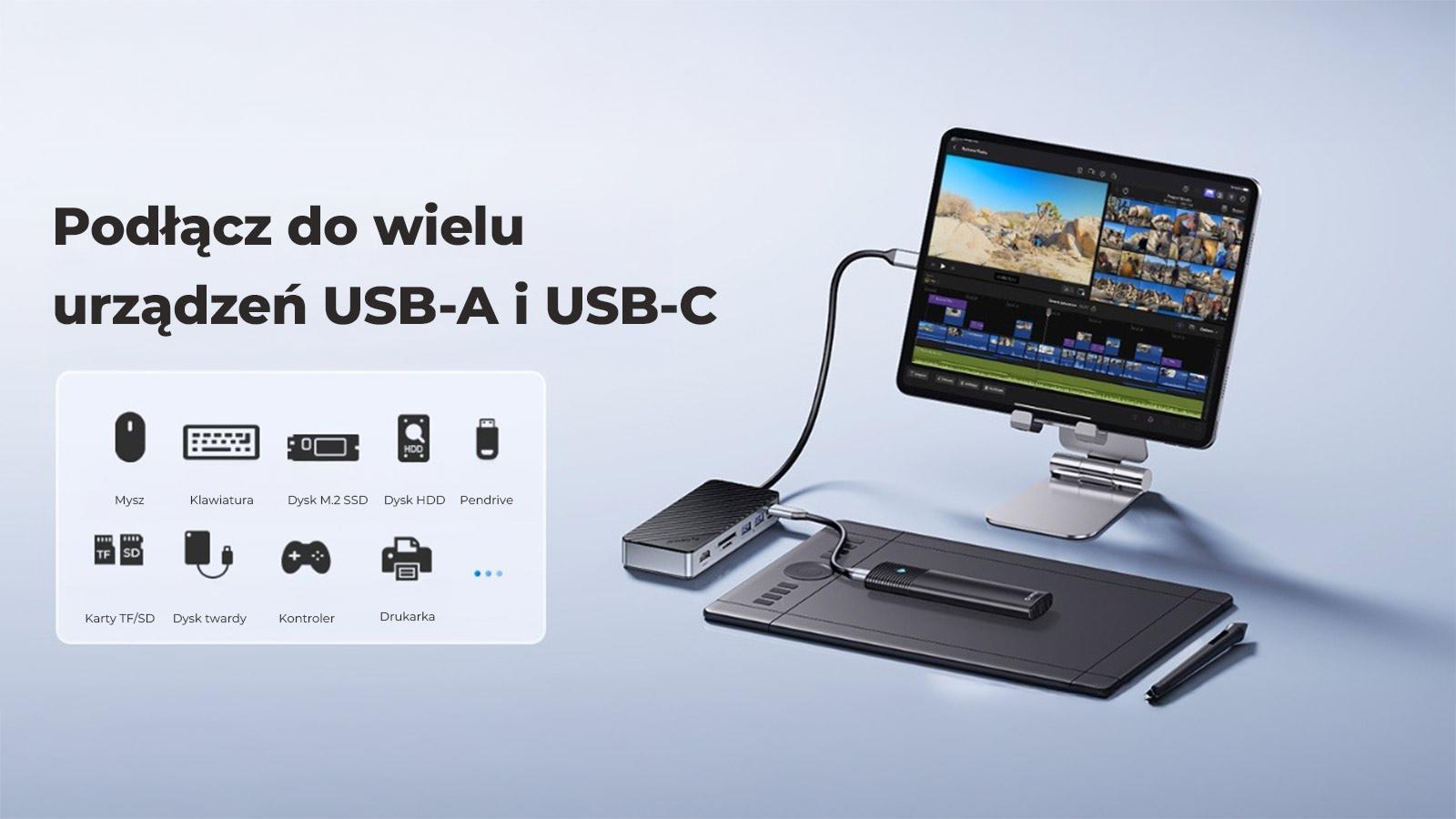 Produkt funguje s notebooky, MacBooky, přepínači, Steam Deckem a dalšími zařízeními s portem USB-C. Testováno mimo jiné s Mac mini M4, Windows, macOS, Linuxem a Androidem. Důležité: aby funkce HDMI fungovaly, musí port Type-C v počítači podporovat režim videa (režim DP-Alt - ověřte si to na webu výrobce zařízení nebo na označení vedle portu).
