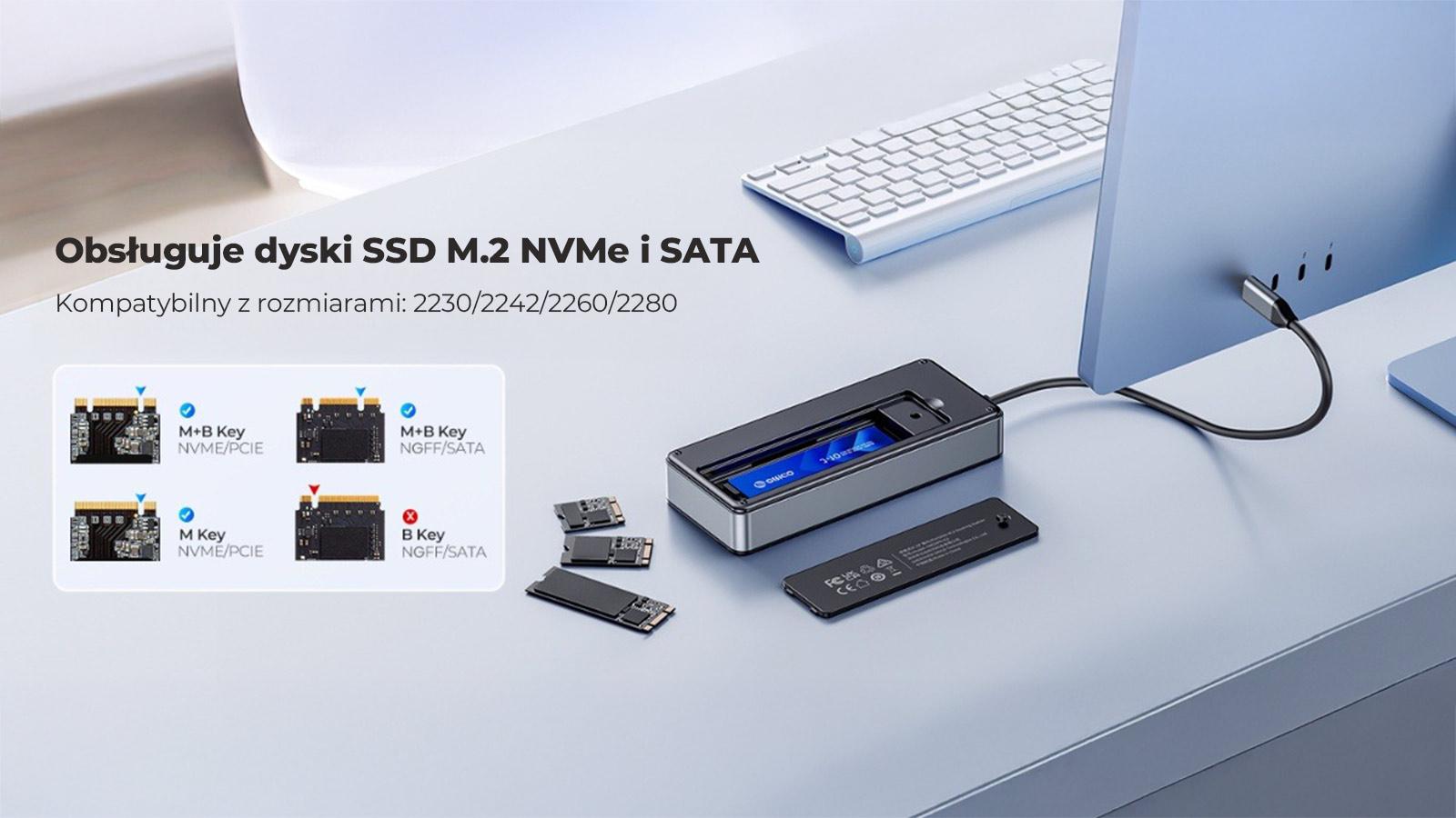Dokovací stanice Orico USB-C s pouzdrem na disky M.2, 10 Gb/s, HDMI 4K 60Hz