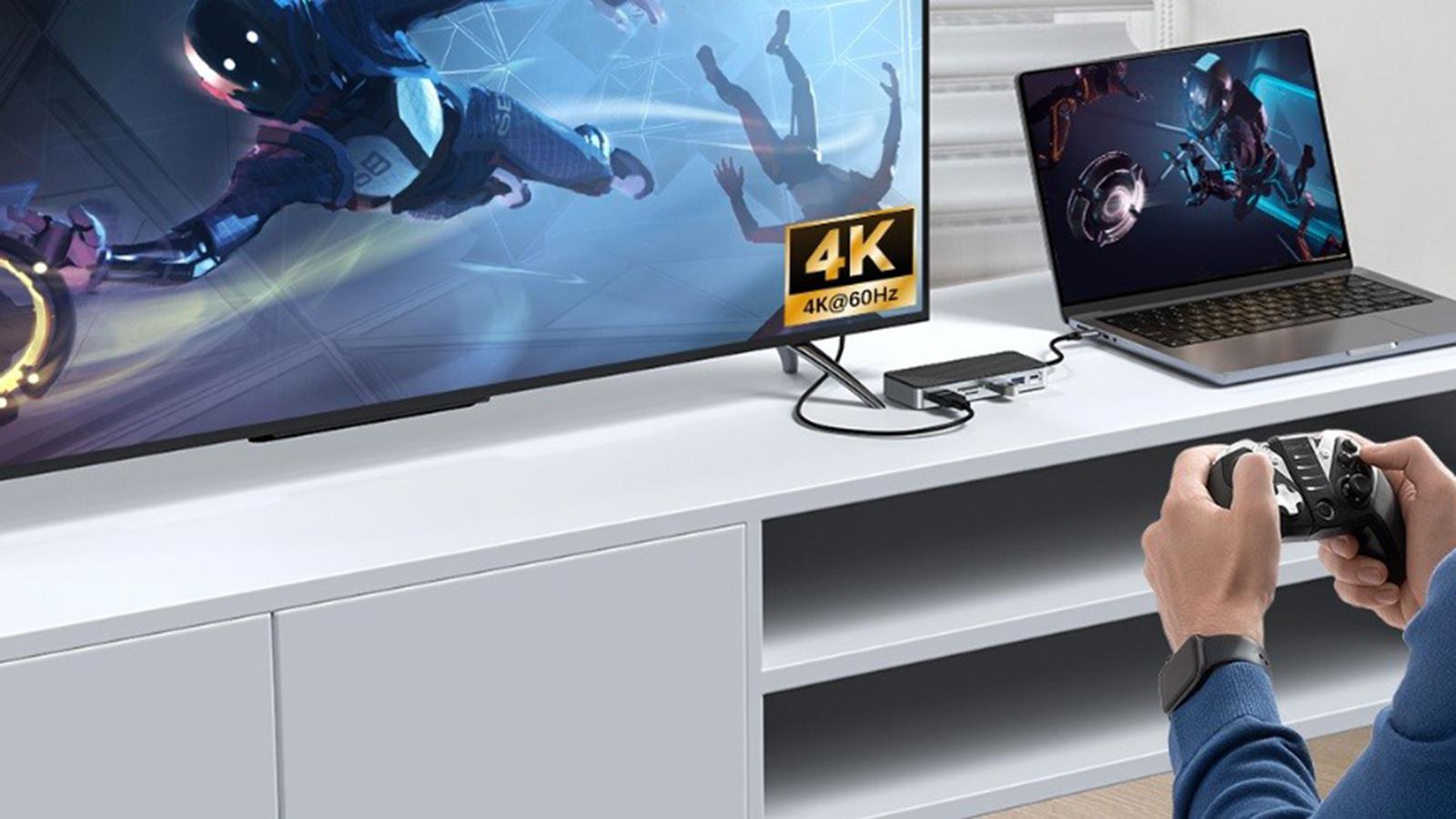 Výstup HDMI 2.0 nabízí rozlišení 4K při 60 Hz - vyšší plynulost a kvalitu ve srovnání se staršími rozbočovači HDMI 1.4. Skvělé pro ty, kteří vytvářejí video obsah nebo prezentují. Funkce HDMI vyžaduje hostitelský port USB-C, který podporuje přenos videa.