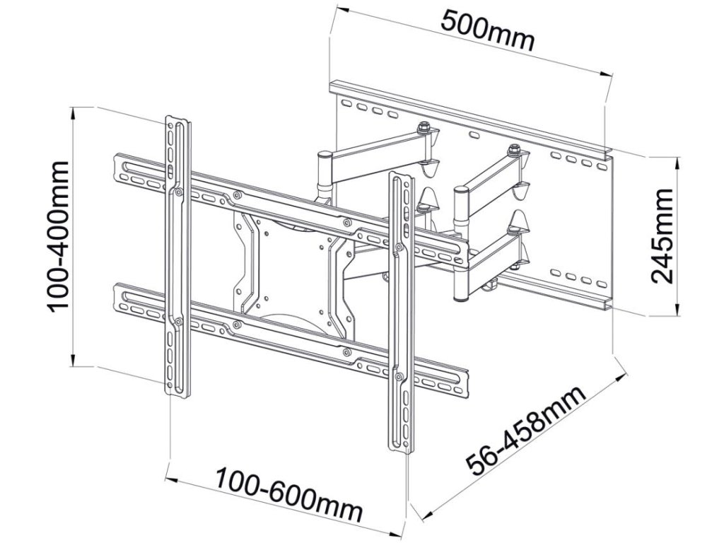 Držák je určen k montáži na stěnu, vzdálenost televizoru lze nastavit od 56 do 458 mm, což poskytuje dostatečný prostor pro kabely a snadný přístup k portům televizoru.
