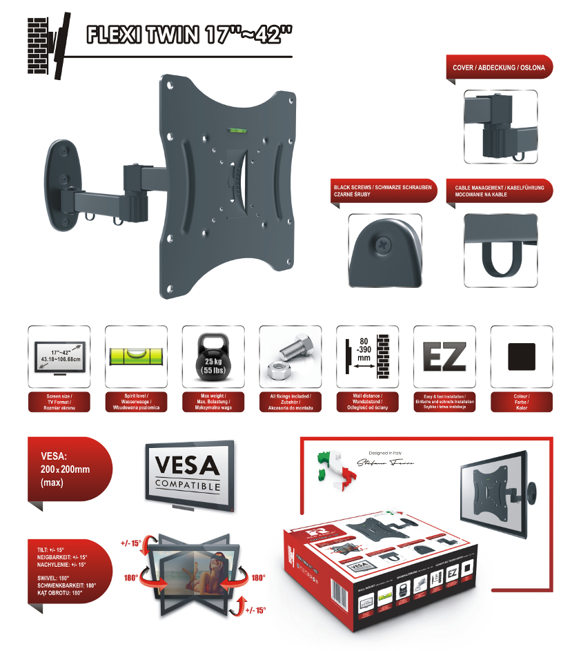 - Kompatibilní s obrazovkami od 17 do 42 palců