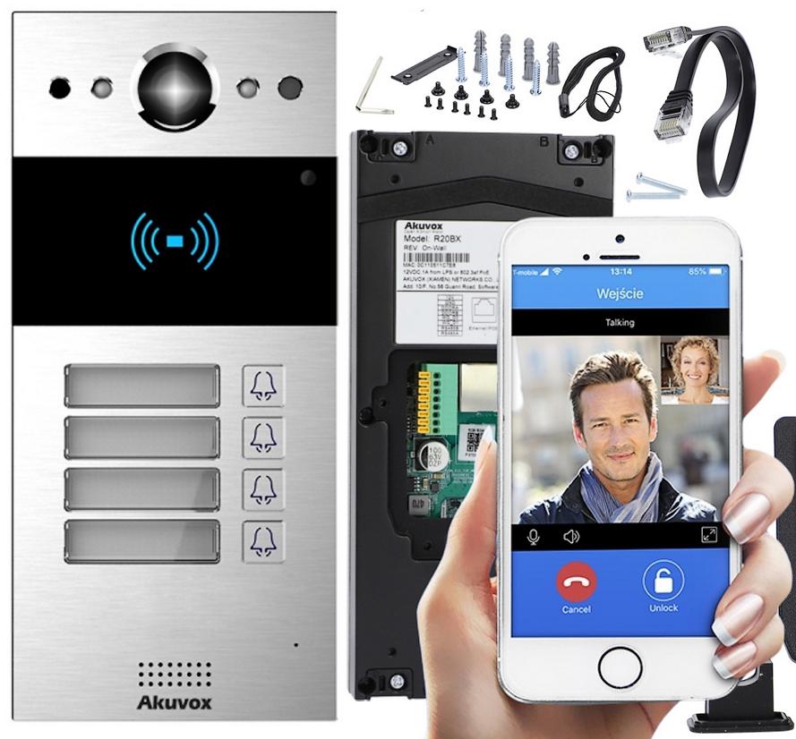- Akuvox R20BX4 to sskvěle zpracovaný panel, který umožňuje videokomunikaci mezi osobami u dveří a obyvateli budovy. Umožňuje vidět návštěvníky a mluvit s lidmi stojícími venku.
