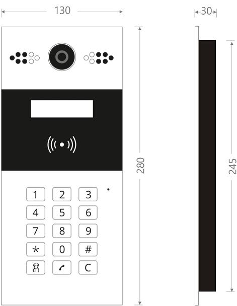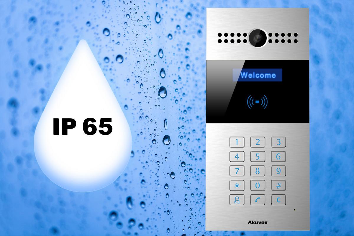 - Vysoká odolnost proti prachu a vodě (třída krytí IP 65) zaručuje, že dveřní panel bude bez problémů fungovat i za nepříznivých povětrnostních podmínek, a poskytuje tak uživatelům nejen bezpečnost, ale také pohodlí a komfort.