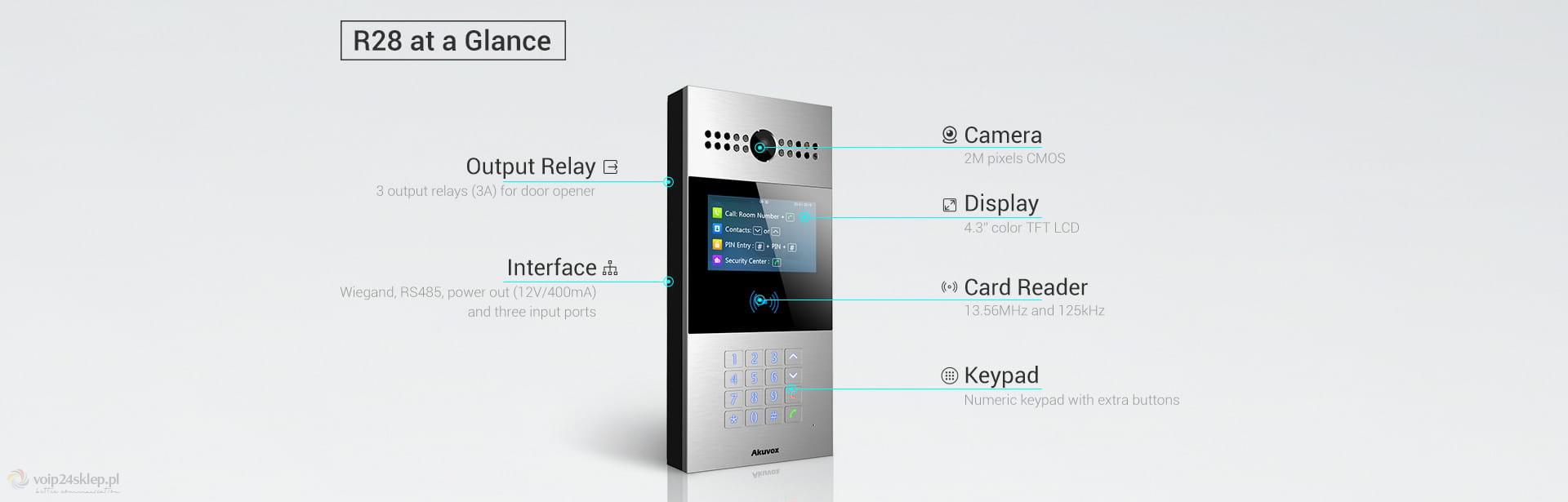 Venkovní videovrátný IP pro více rodin s mechanickou klávesnicí a 4,3" LCD displejem Akuvox R28A - klíčové vlastnosti: