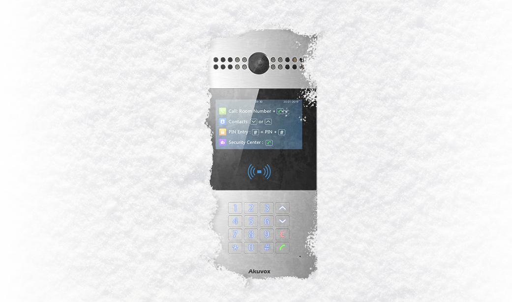 - Chytré topení: panelAkuvox R28A byls vestavěným inteligentním ohřívačem, což mu umožňuje spolehlivě pracovat při extrémně nízkých teplotách. Díky tomu je zařízeníAkuvox R28A může pracovat při teplotách od -40 °C do +55 °C. To znamená, že bez ohledu na podmínky zůstane váš videointerkom aktivní a připravený k použití.