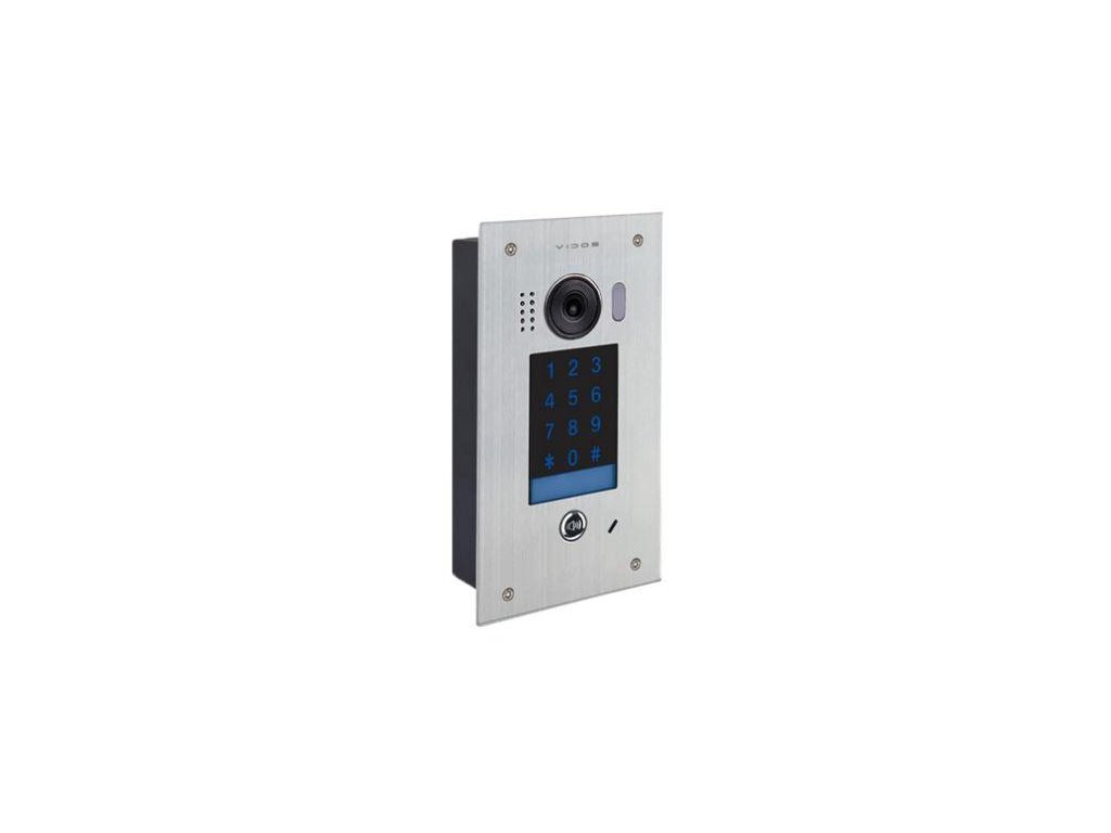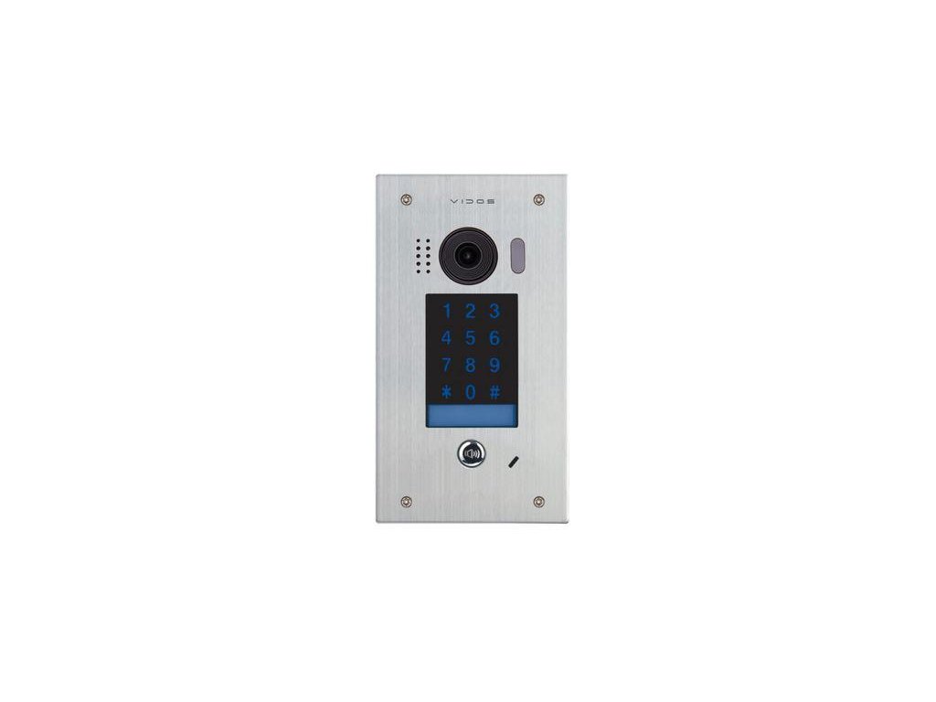 Dveřní stanice pro jednoho účastníka s vestavěným kódovým zámkem, který umožňuje otevření vchodu pomocí kódu. Přední panel z broušené nerezové oceli je vybaven dotykovou podsvícenou numerickou klávesnicí. Klávesnice funguje jako vstupní terminál a programovací panel. Klávesnice a vývěsní štít jsou během hovoru, konverzace a otevírání dveří podsvíceny libovolnou barvou (RGB). Noční LED osvětlení umožňuje pohodlné používání zařízení za snížené viditelnosti.
