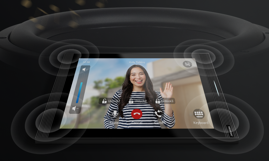 - Výkonný čtyřkanálový zvukový systém se čtyřmi reproduktory: vysoce kvalitní zvuk poskytuje monitorAkuvox AKV-S567Wjasnou komunikaci s hosty, aby konverzace byla tak přirozená, jako byste skutečně byli vedle sebe.