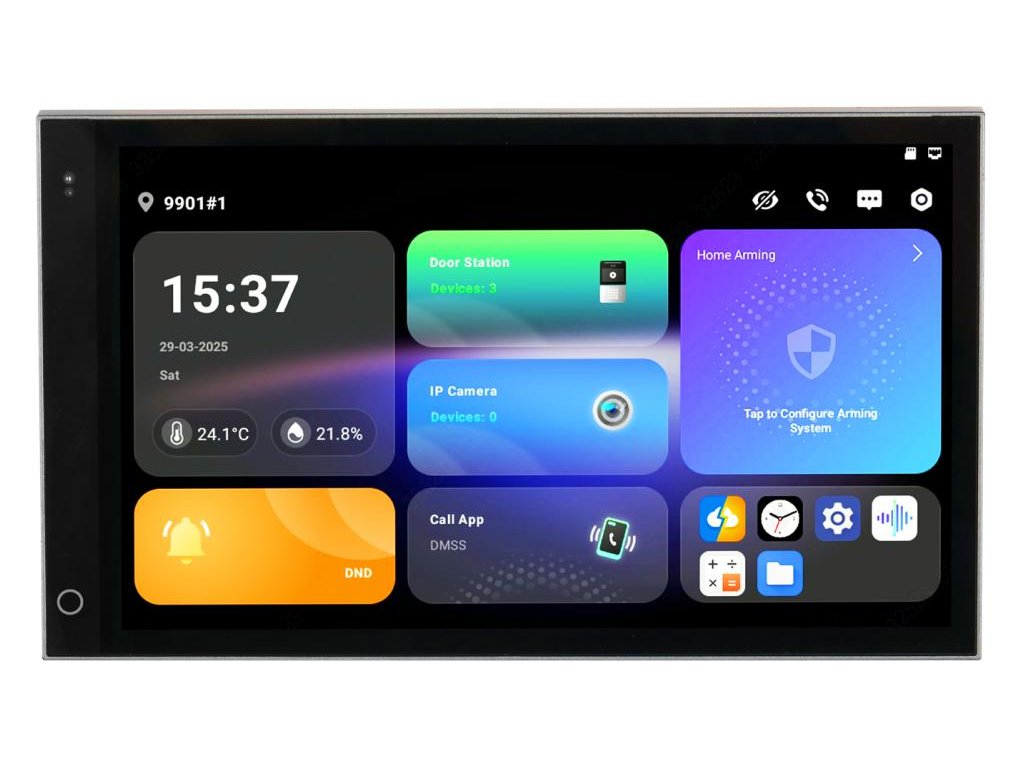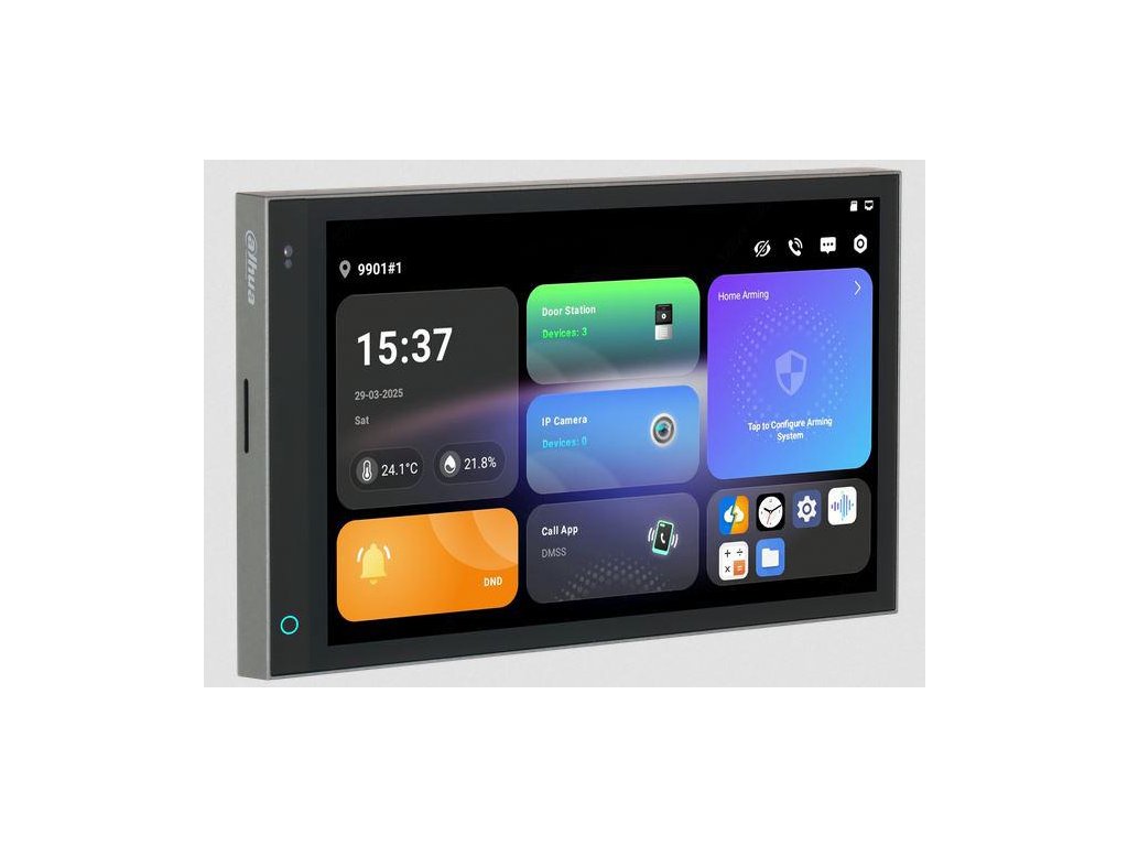 Inteligentní IP ústředna Dahua SCP3022A-B je moderní a multifunkční zařízení, které v sobě integruje video interkom, systém video dohledu a bezdrátový alarm. Díky tomu je ideální pro zařízení, jako jsou rodinné domy, byty, kanceláře nebo hotely. Panel pracuje na bázi systému Android 14, který umožňuje instalaci dalších aplikací a rozšíření funkcí pomocí softwaru třetích stran. Použité7palcový kapacitní dotykový displej IPS orozlišení 1024 × 600 poskytujevysoká kvalita obrazu a pohodlné ovládání. Monitor nabízíširoké pozorovací úhly až 80° vertikálně i horizontálně, což zaručuje čitelnost obrazu z různých úhlů pohledu. Zařízení je také vybavenovestavěná čidla teploty a vlhkostiumožňující jejich prohlížení kdykolipřímo na domovské obrazovce. Celek doplňujemoderní design přes celou obrazovku s velmi tenkým černým rámečkemcož podtrhuje minimalistický charakter panelu.