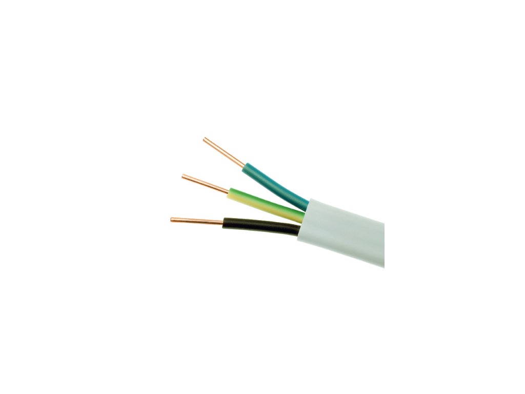 Kabely s měděnými, plnými vodiči, s PVC izolací a pláštěm, ploché, pro všeobecné rozvody pro trvalou instalaci v elektrických zařízeních pracujících v suchých a vlhkých podmínkách, pro pokládku pod omítku a na omítku.