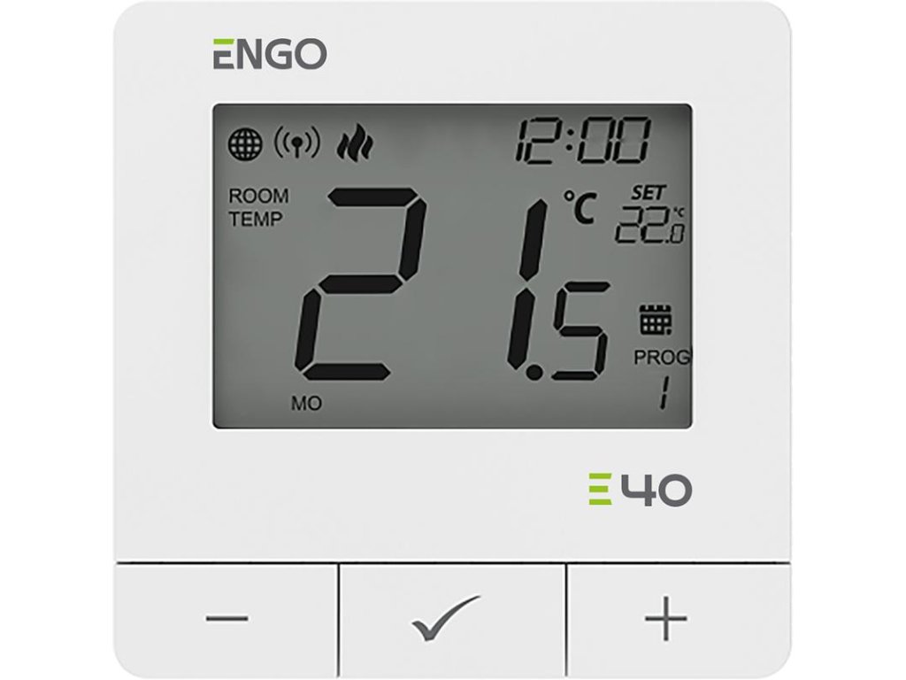 ENGO Controls E40-230W - Programovatelný, internetový regulátor teploty pro povrchovou montáž, ZigBee/868MHz, 230V, bílý