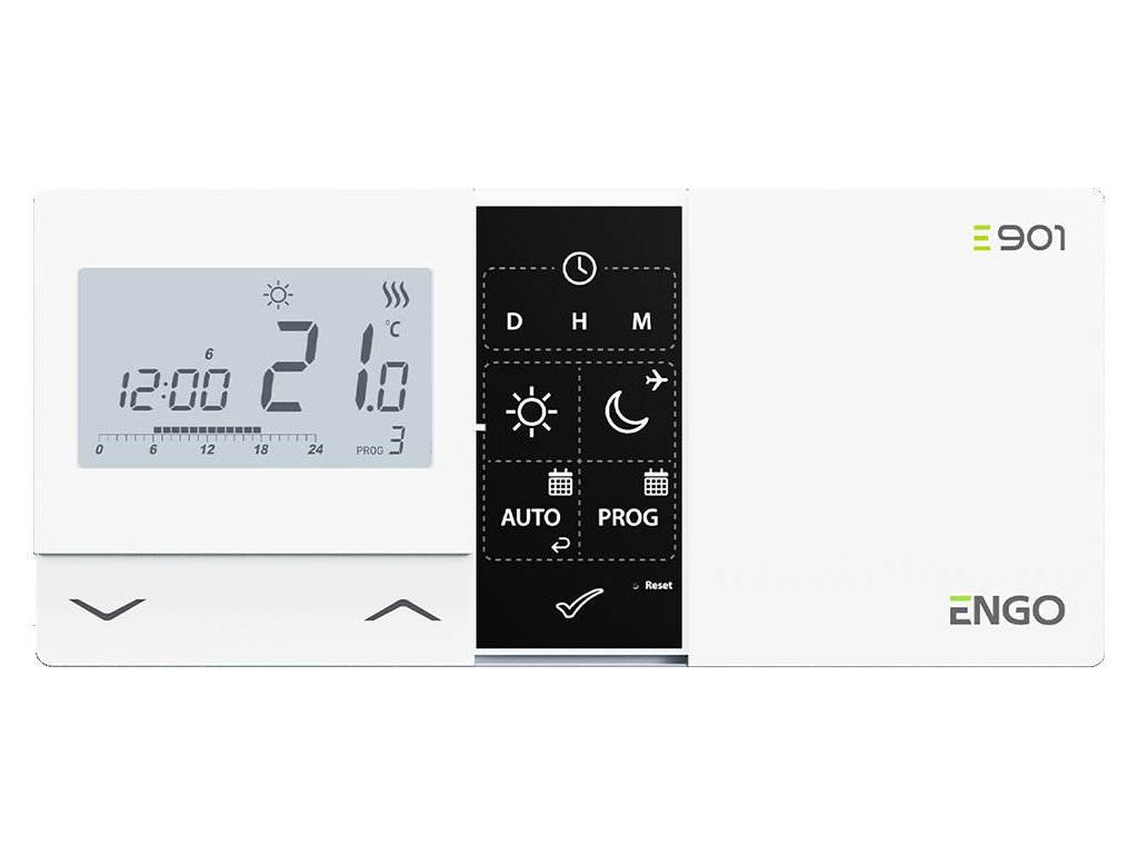 Kabelový regulátor ENGO Controls E901 je spolehlivým řešením pro každého, kdo chce přesně regulovat teplotu ve svém domě. Tento technologicky vyspělý výrobek v sobě spojuje snadné použití a výjimečnou funkčnost. Díky němu dosáhnete dokonalého tepelného komfortu v každé místnosti.