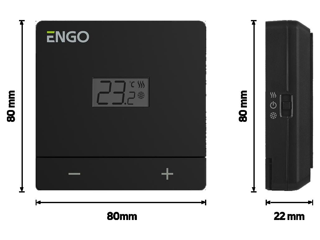 ENGO Controls EASY-230B - regulátor teploty, 230V, černý, denní, povrchová montáž