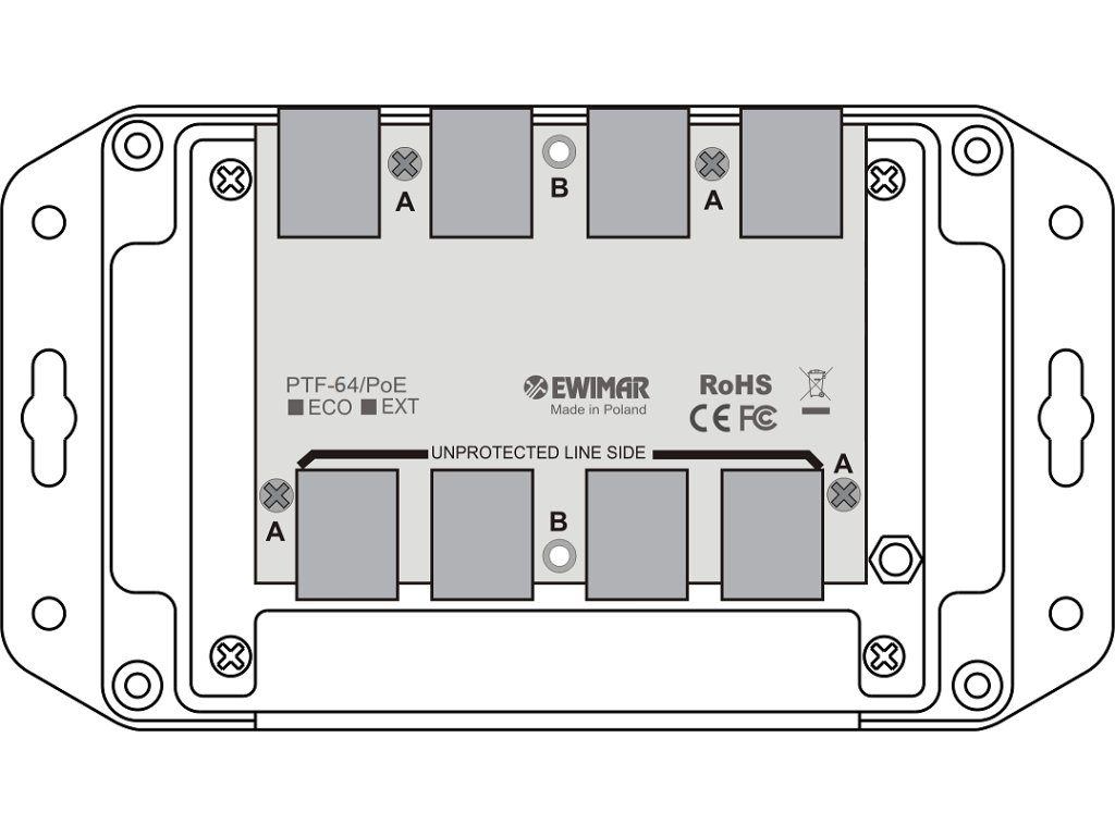 Modul PTF-64-EXT/PoE se instaluje do speciální základny PTU/PTF-6-RACK, která pojme až 4 moduly různých typů. K dispozici jsou také hotové jednotné 8kanálové a 16kanálové jednotky se všemi moduly stejného typu. Modul lze také použít v malých instalacích a přišroubovat jej na stěnu, pokud je namontován v plastovém pouzdře PTU/PTF-6-BOX(DIN).