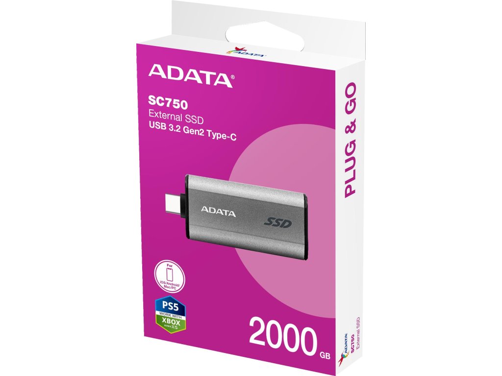 Adata SC750 je dokonalou kombinací moderního stylu a bezkonkurenční funkčnosti. Tento externí SSD disk nabízí nejen působivou kapacitu 2 000 GB, ale také rychlé rozhraní USB 3.2C, které se promítá do vynikajícího výkonu. S tímto modelem získáte přístup ke svým datům kdekoli a kdykoli, bez ohledu na to, jaký operační systém používáte.