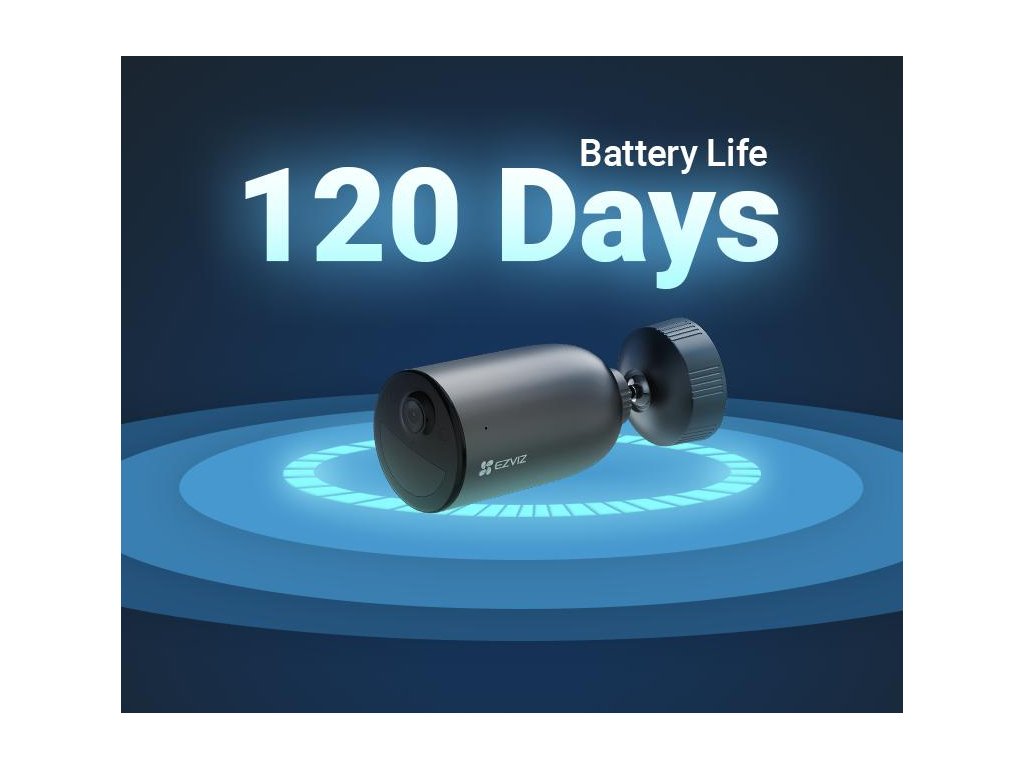 Fotoaparát EB3 je vybaven baterií s kapacitou 5200 mAh, takže jej stačí nabíjet jednou za 120 dní¹. Máte obavy o úroveň nabití baterie? Můžete si zakoupit solární panel EZVIZ³, který bude kameru nepřetržitě napájet.