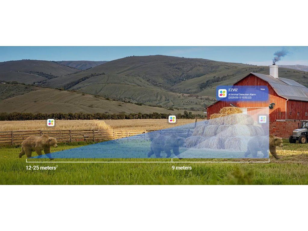 Díky pokročilé technologii detekce zvířat EZVIZ vás kamera upozorní na přítomnost zvířat v reálném čase. Díky tomu můžete rychle reagovat a vyhnout se nežádoucím situacím na vašem pozemku.