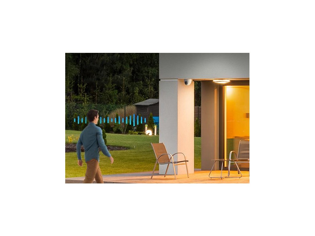 S fotoaparátemH4 PoE můžete ještě snadnějividět a slyšetco se děje na vašem dvorku - ať jste kdekoli. Vestavěnýduální mikrofon účinně zachycuje zvuky pro čistý poslech i ze vzdálenosti až do15 metrů.