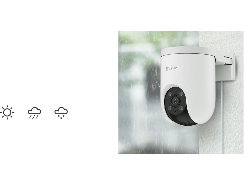 - Utěsněná konstrukce odolná vůči nepříznivým povětrnostním podmínkám : kamera 4G 2K 3MPx EZVIZ CS-H8c je navržen pro dlouhodobý provoz i v extrémních povětrnostních podmínkách. Jeho utěsněná konstrukce poskytuje ochranu před deštěm, větrem, sněhem a prachem a zajišťuje spolehlivý provoz za všech povětrnostních podmínek.