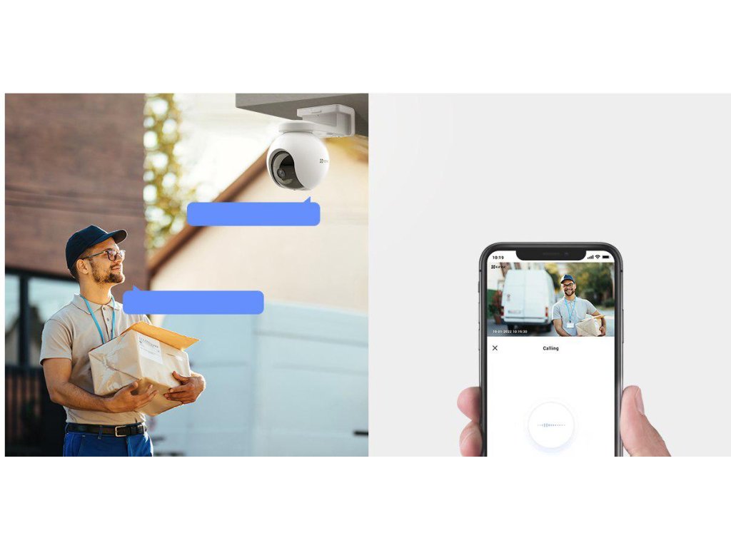 Kameru HB8 2K⁺ můžete snadno spravovat pomocí aplikace EZVIZ. Živý náhled můžete ovládat také pomocí hlasových příkazů, např. vyslovením "Hey Google" nebo "Alexa" zobrazíte obraz na velké obrazovce.