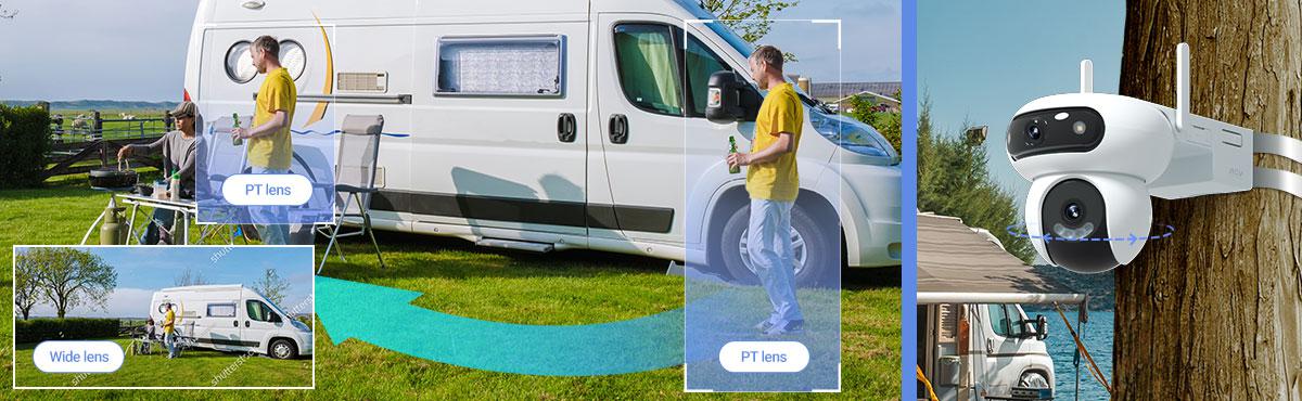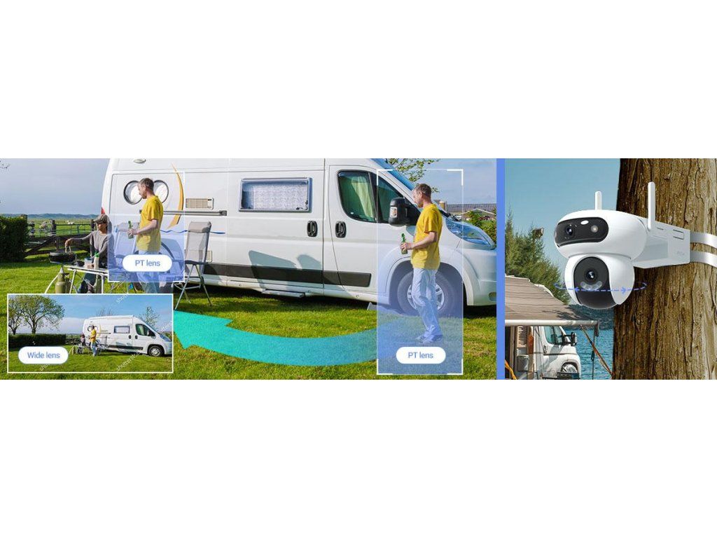 Horní čočka detekuje osobu nebo vozidlo, zatímco spodní čočka se automaticky otáčí a sleduje objekt a udržuje ho v záběru. Díky tomu získáte plynulý a úplný záznam událostí - aniž byste přišli o důležité okamžiky.