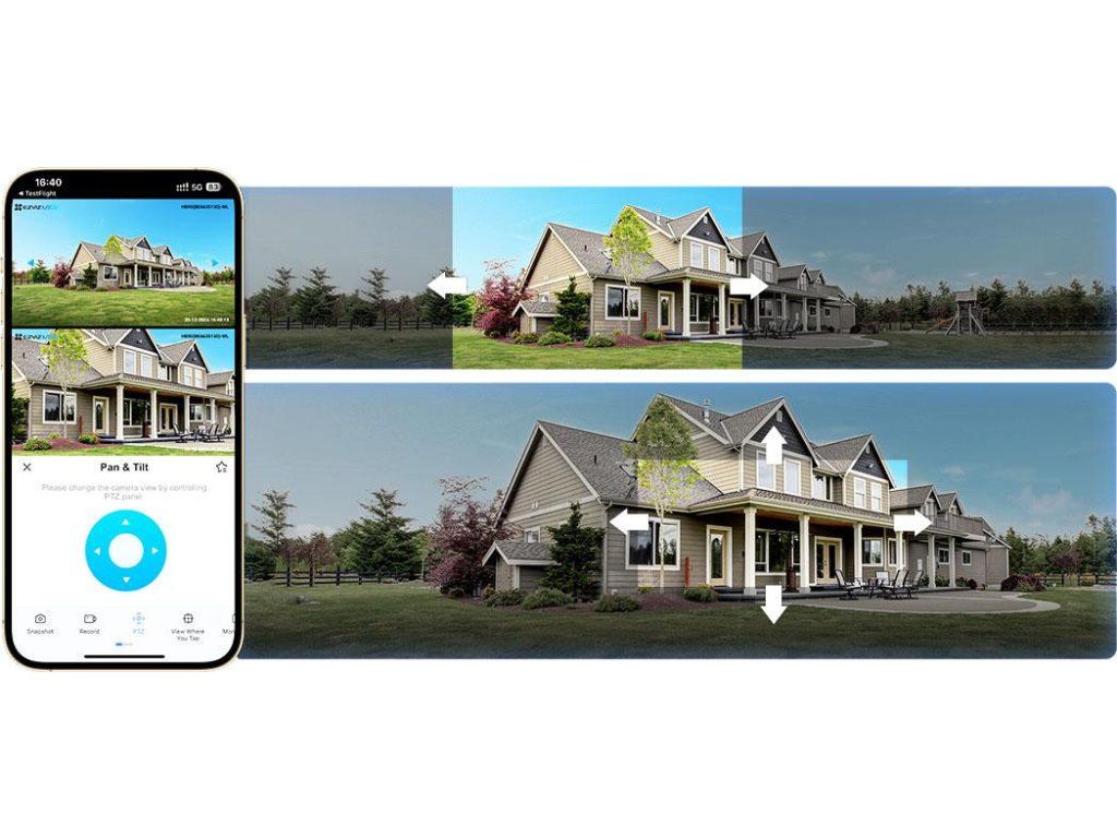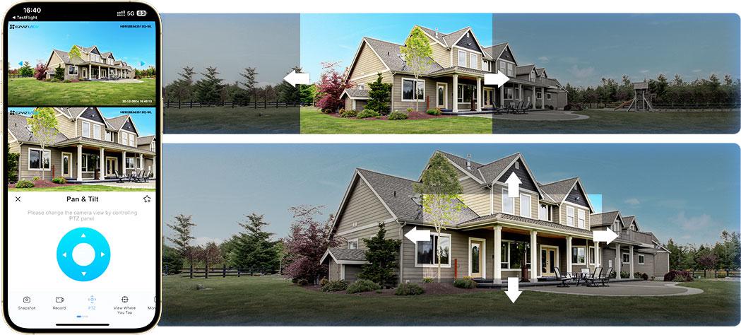 Aplikace EZVIZ umožňuje pohodlně spravovat obraz z fotoaparátu. V panoramatickém zobrazení se jednoduše dotkněte požadované části a ihned se zobrazí podrobné přiblížení.