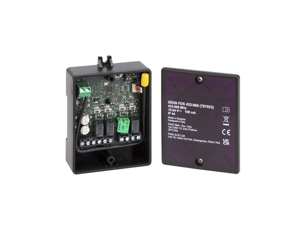 FAAC XR2N FDS 2-kanálový venkovní přijímač 433-868 Mhz s integrovaným dekódováním FDS-SLH-RC-DS ve vyhrazeném venkovním krytu. Ideální všude tam, kde chcete používat nové dálkové ovládání FAAC FDS.