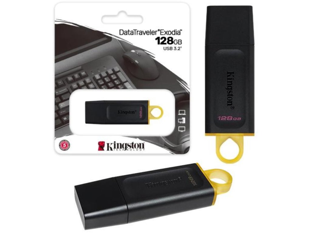 - Mezi silné stránky paměti DT Exodia patří kapacita 128 GB, dlouhá záruční doba, bezplatná technická podpora a legendární spolehlivost produktů Kingston®.