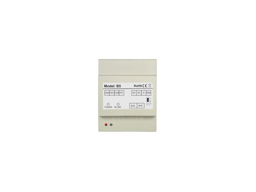 B5 je speciální modul určený pro použití v systému VIDOS DUO. Jeho funkcí je rozšíření funkcí systému o možnost ovládání druhého šroubu/brány nebo ovládání osvětlení. Modul také umožňuje ovládání silnoproudých závor a otevírání vchodu pomocí přídavného tlačítka NO při odchodu z objektu.