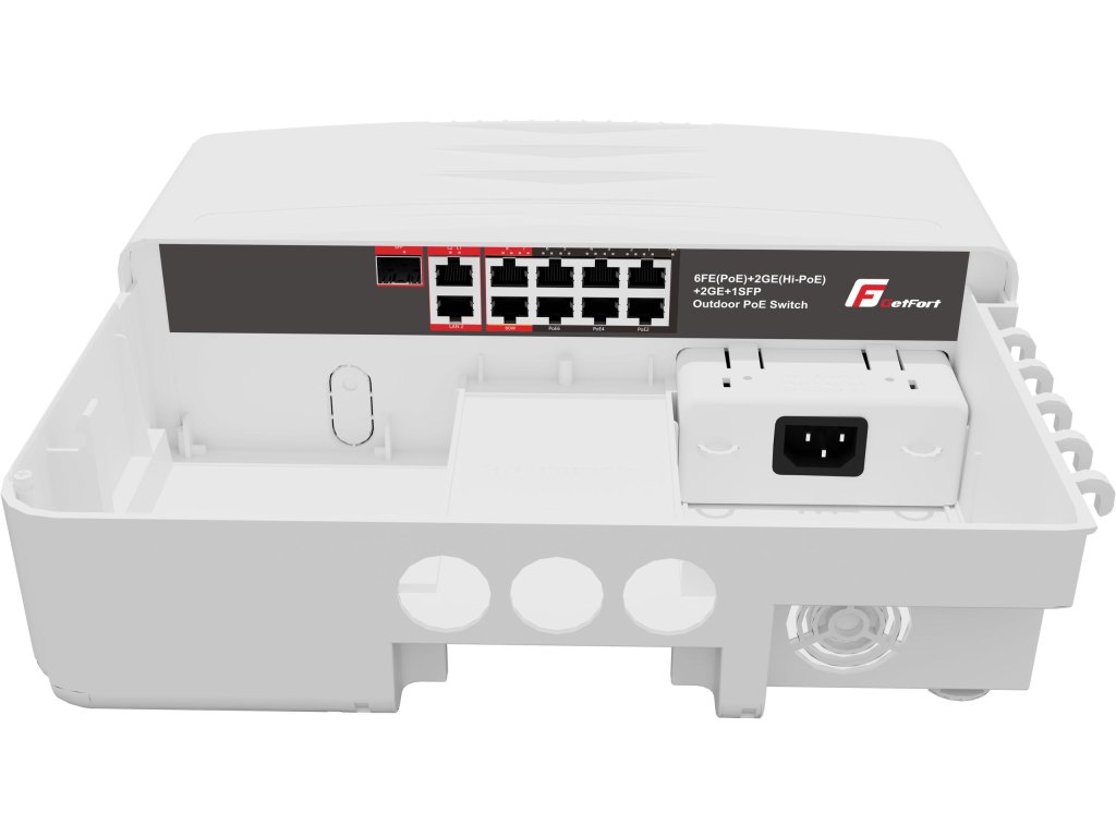 Getfort GF-6221-GGUF-PO je profesionální PoE switch pro venkovní aplikace s 8 porty Fast Ethernet PoE (6FE+2GE), 2 porty Gigabit Ethernet uplink a 1 portem SFP. Maximální napájení je 120 W a umožňuje použití zařízení s vysokou spotřebou energie (až 60 W na port, technologie PoE bt). Zařízení je vybaveno funkcí AI Watchdog, která zajišťuje automatickou detekci a resetování pozastavených síťových zařízení, IP kamer atd. a zvyšuje tak provozní spolehlivost. Přepínač nabízí pokročilou ochranu proti přepětí (6KV Lightning & 8KV ESD Protection), což z něj činí vynikající volbu pro použití v náročných venkovních podmínkách.