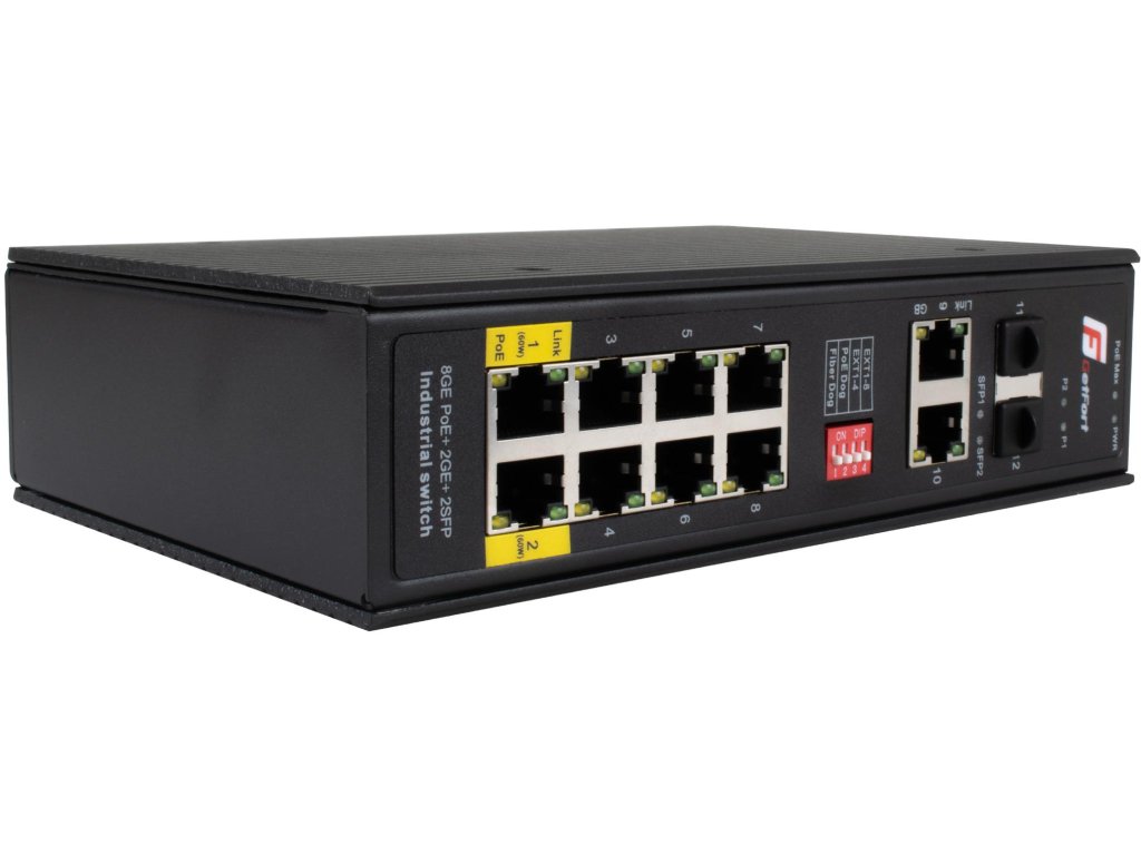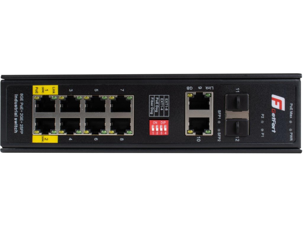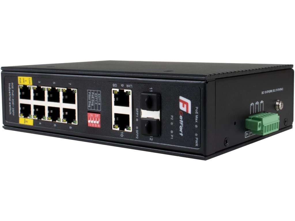 GETFORT PRŮMYSLOVÝ POE SWITCH 8GE+2GE+2SFP (-40/80)