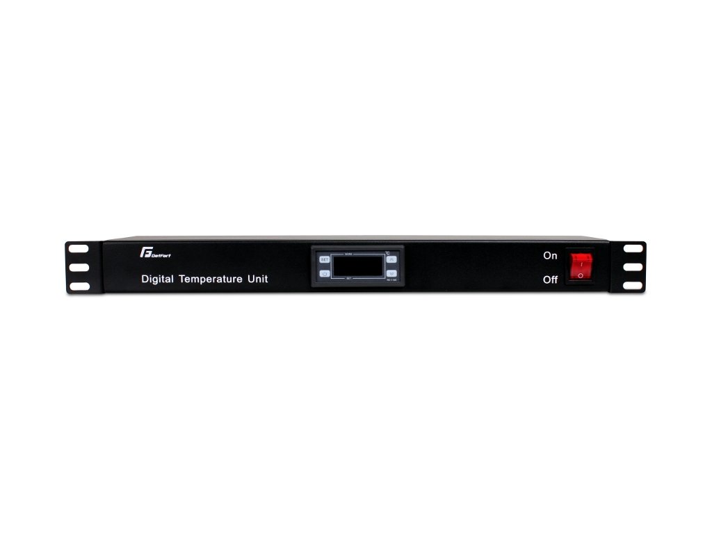 Digitální termostat slouží k řízení provozu ventilačních panelů uvnitř racku.Vestavěný teplotní senzor umožňuje zapínat a vypínat ventilátory v závislosti na teplotě uvnitř racku, čímž se udržují správné pracovní podmínky pro instalované zařízení a zároveň se šetří energie.