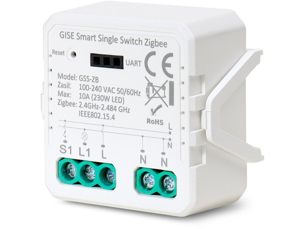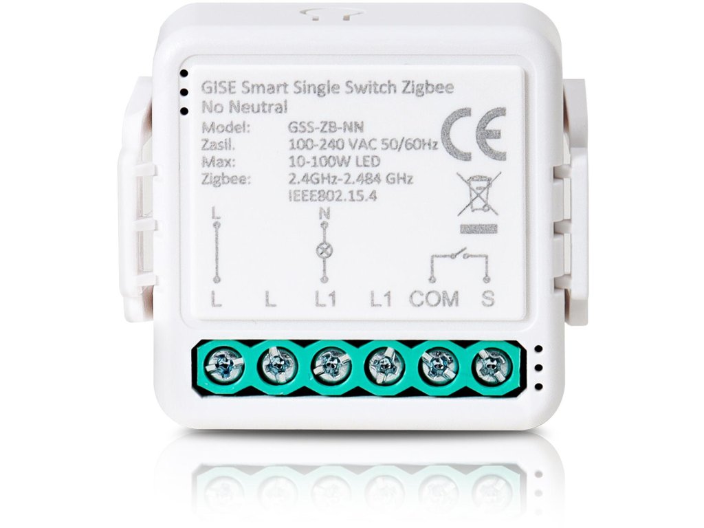 Gise SMART Single Switch bez nulového vodiče - jednoduché světelné relé Zigbee kompatibilní s aplikací TUYA