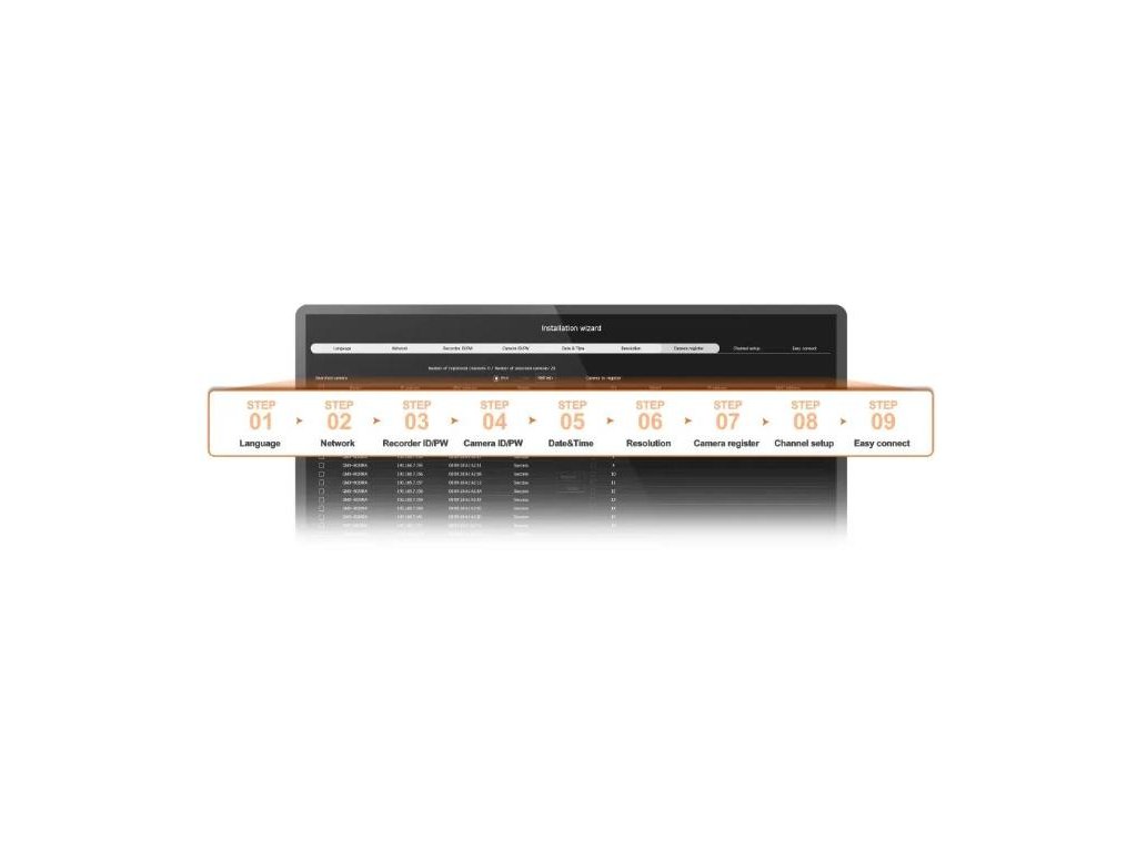 NVR řady A provedou uživatele procesem konfigurace sítě, kamery a nastavení data a času pomocí snadného a intuitivního průvodce instalací.