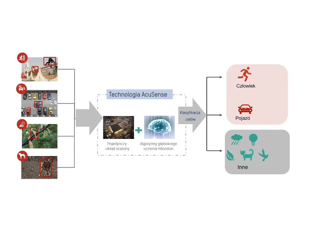 Systém AcuSense detekuje siluety lidí a vozidel, ale filtruje také upozornění z jiných zdrojů než od lidí a vozidel. Kromě toho je řada kamer AcuSense s využitím nejnovější technologie hlubokého učení schopna extrahovat osoby a vozidla z velkého souboru videodat a ukládat snímky objektů pro efektivní vyhledávání.