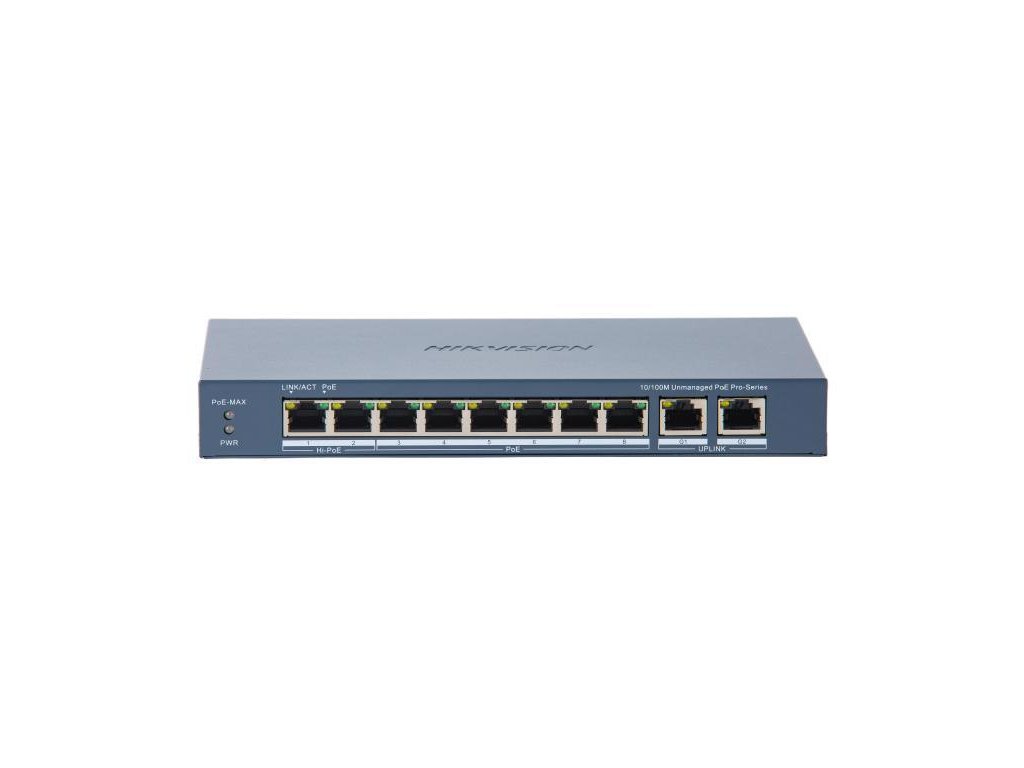 - 8 × 10/100 Mb/s PoE portů, 2 × gigabitové porty RJ45