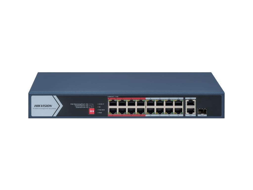 | Porty | 16 × 10/100 Mb/s PoE, 1 × Gigabit RJ45, 1 × Gigabit Combo |