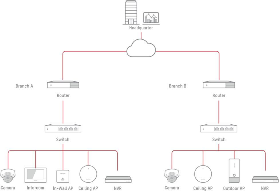 | Hik-Partner Pro - Vlastnosti | Zobrazení rychlosti portu; využití šířky pásma; topologie; alarmy; restart portu/zařízení; vzdálená aktualizace |